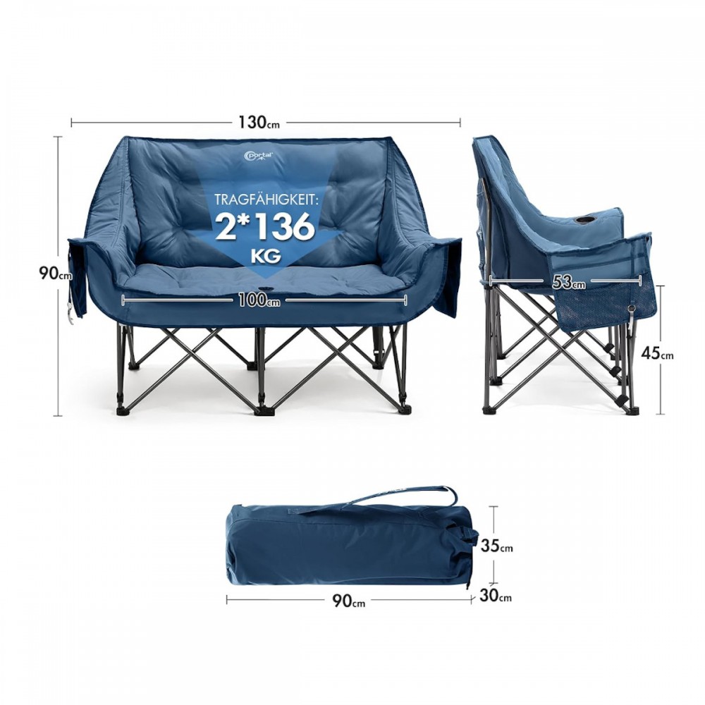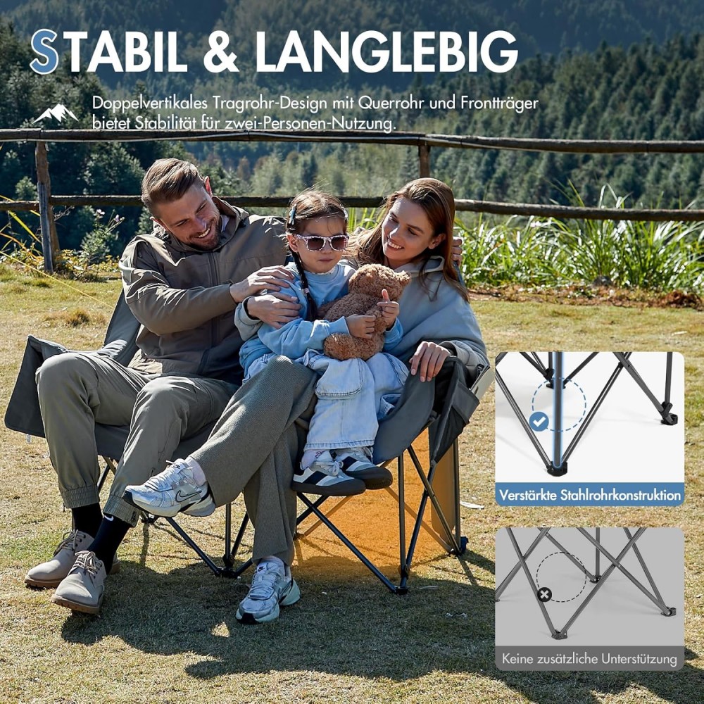 - Çift Kişilik Kamp Sandalyesi 272 kg taşıma kapasitesine sahip!