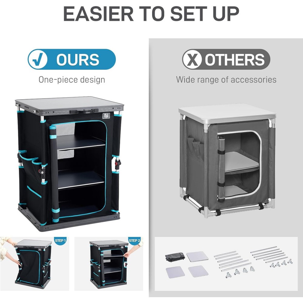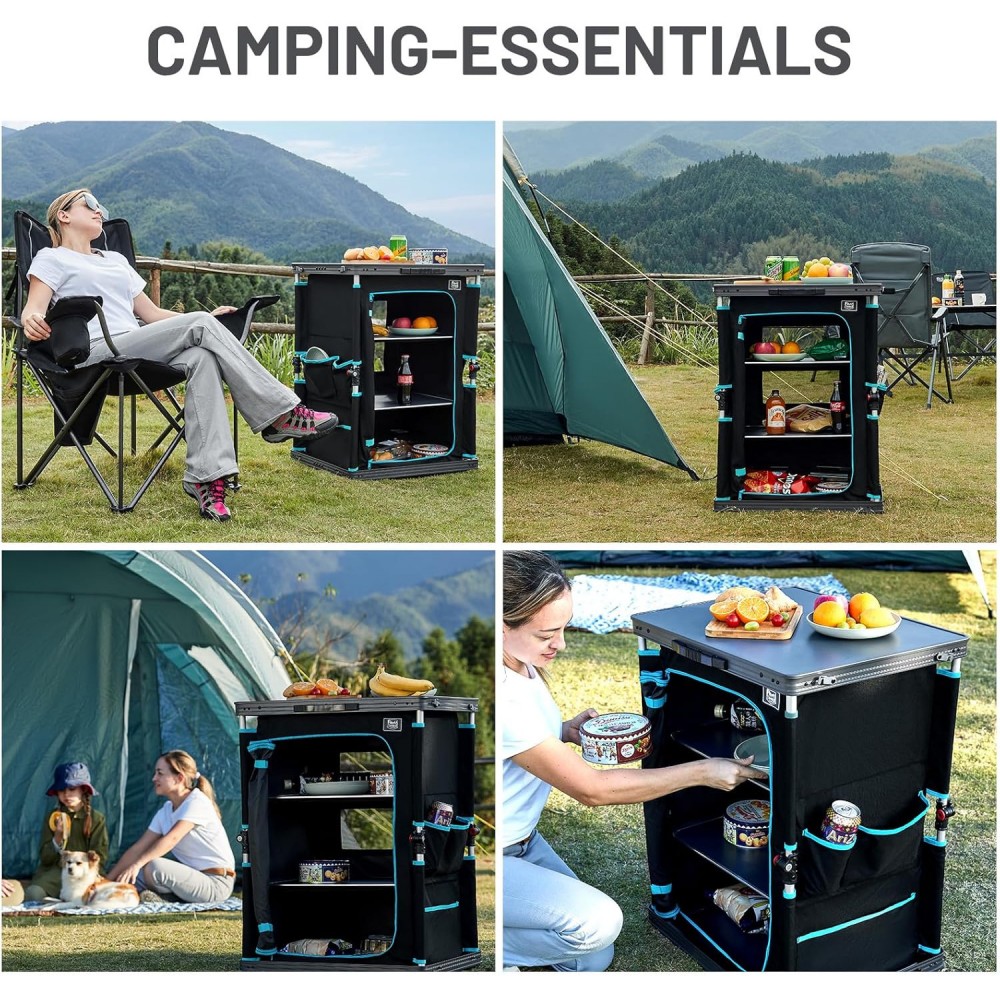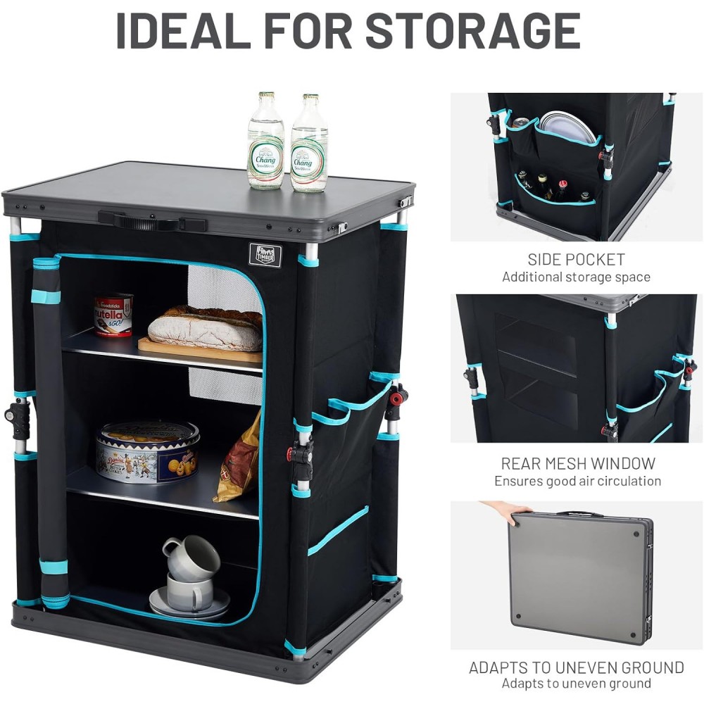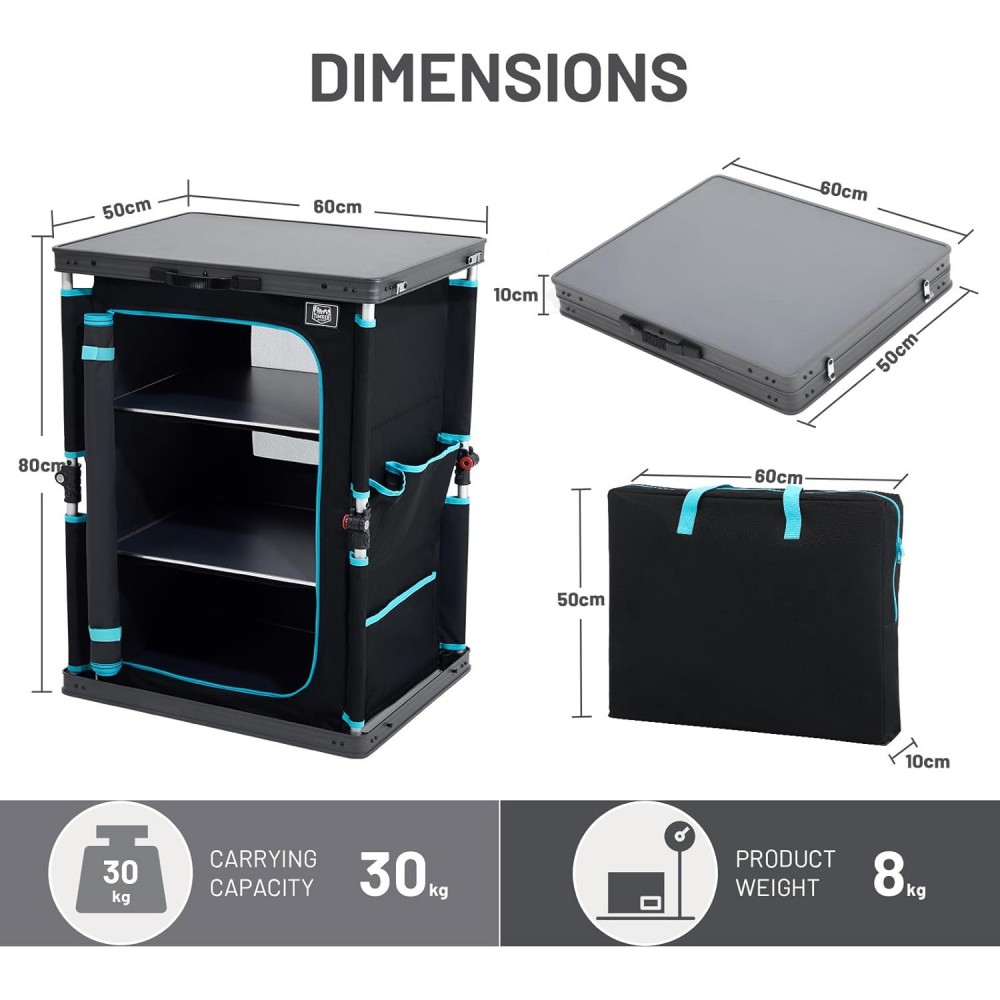 - 4 katlı tasarımı ile kampta ihtiyaç duyacağınız tüm mutfak eşyalarınız için ideal.