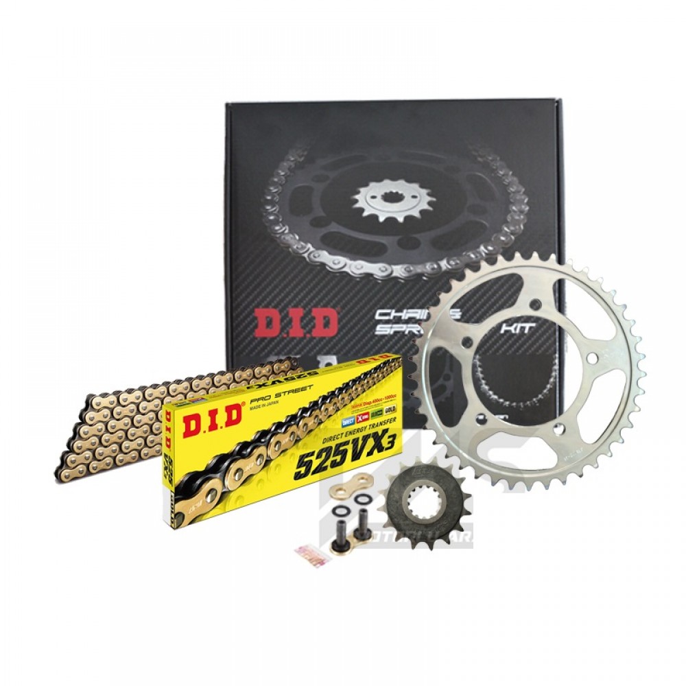 DID zincir-dişli setleri, motosikletinizin orijinal donanımıyla birebir uyum sağlar.